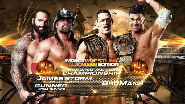 -You can say without a doubt one of the most shocking moments at this year's Bound for Glory, was with the Bromans winning the TNA World Tag Team Championships over Gunner and Storm.As much as they want to party, and tan it up to the end of the night, no time to party, as they will need to defend those belts against Gunner and Storm, will the party keep going into the night for the Bromans, or will Gunner and Storm be chugging beers as two time tag team champions?