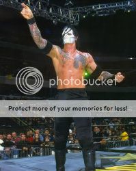 Krazy looks down at Allen he takes a step toward him but stops uncertainty washes over his face. Then he looks at the turnbuckle and smiles. He climbs the turnbuckle halfway up he notices his Librarian in the front row she blows him a kiss. He looks down winking at her.