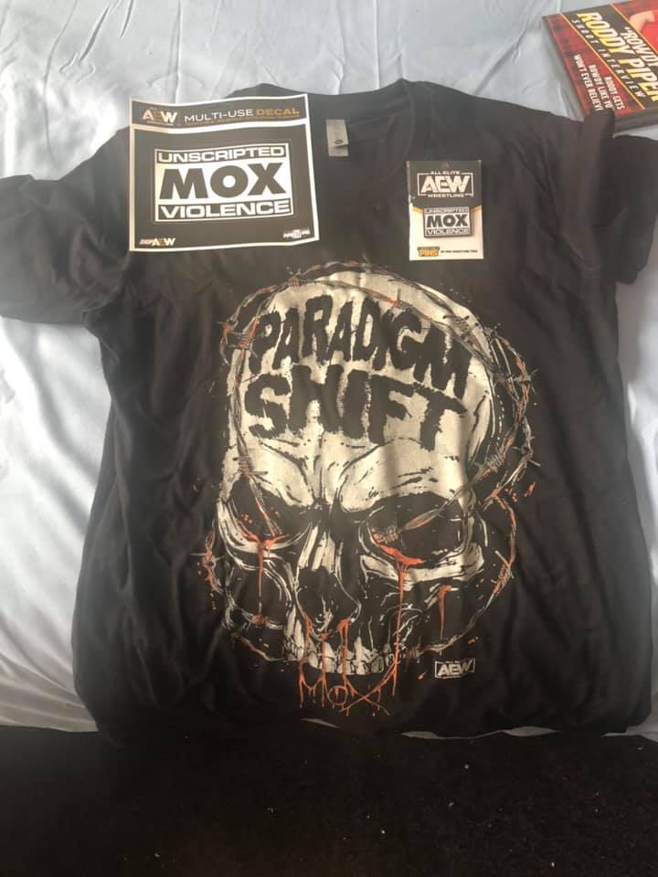 Cool shirt, cool pin, cool decal. Thanks AEW lol.