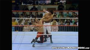 Back to the match and The Islanders win in two straight falls. Firstly Roma is counted out after injuring his knee. Later after Powers takes a beating he tags Roma who is still favouring his knee. The heels make short work of pretty boy Roma. He takes a top rope splash to the knee. He quickly submits to a half Boston crab. **