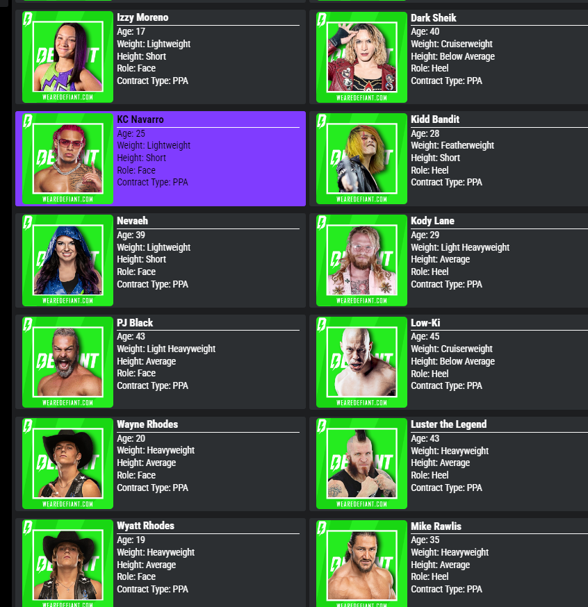 I will say, that for the World Title, it's just Punk and WALTER who I have booked as champions, and the Knockouts its Rosemary, Toni Storm, and now AJ Lee who I have had as champs. I think the rest actually have a few title changes and what not. Even some are people who aren't signed but I borrowed from other companies(I got a partnership with a few companies).