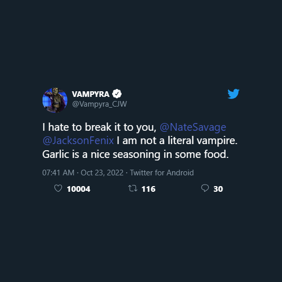@NastySavage: @Fenix69 I tried to tell you she wasn’t a literal vampire!