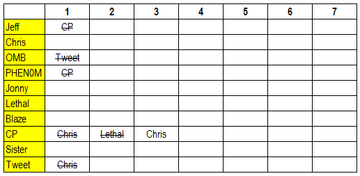 Blaze >> CP >> Chris >> OMB >> Tweet >> Jonny >> Jeff >> PHEN0M >> Lethal